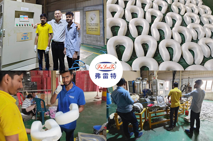 2023年2月27日,疫情后弗雷特再次走出國門,到孟加拉國當地的一家頸枕聚氨酯發泡生產廠家進行售后使用和講解服務。一如既往地以更優良的產品和服務回報社會,“人為本、誠乃金、客至尊”,是我們公司的開創初衷。弗雷特為客戶一站式定制整套聚氨酯設備!