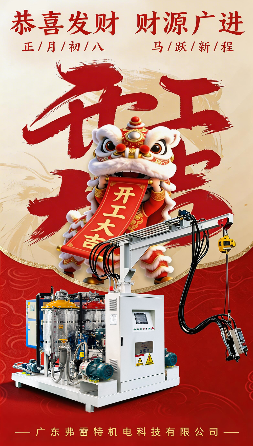 新歲啟封,征途再續。2025年,廣東弗雷特將繼續秉持“技術為先,穩定為本”的理念,依托強大的研發實力與定制化解決方案能力,為每一位客戶提供更專業、更高效的聚氨酯發泡設備與服務。我們深知每位客戶的需求各不相同,無論是產品系列、技術要求,還是生產規模與工藝流程,弗雷特都將為您量身打造最適配的解決方案。