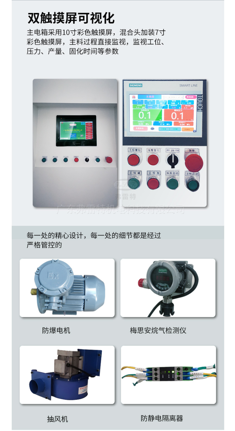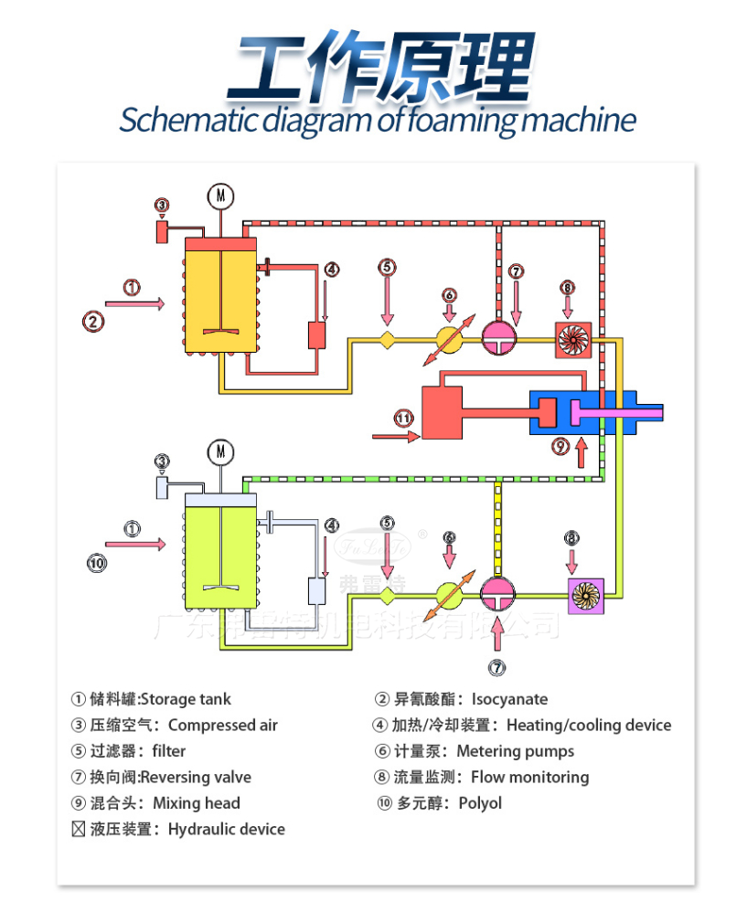 混合裝置:本系統采用自清潔/止逆/防濺粘/新型V型(實現3次混合功能)發泡槍,結構美觀、操作方便。配合西門子聚氨酯專用泵,注射準,混合效果很好。