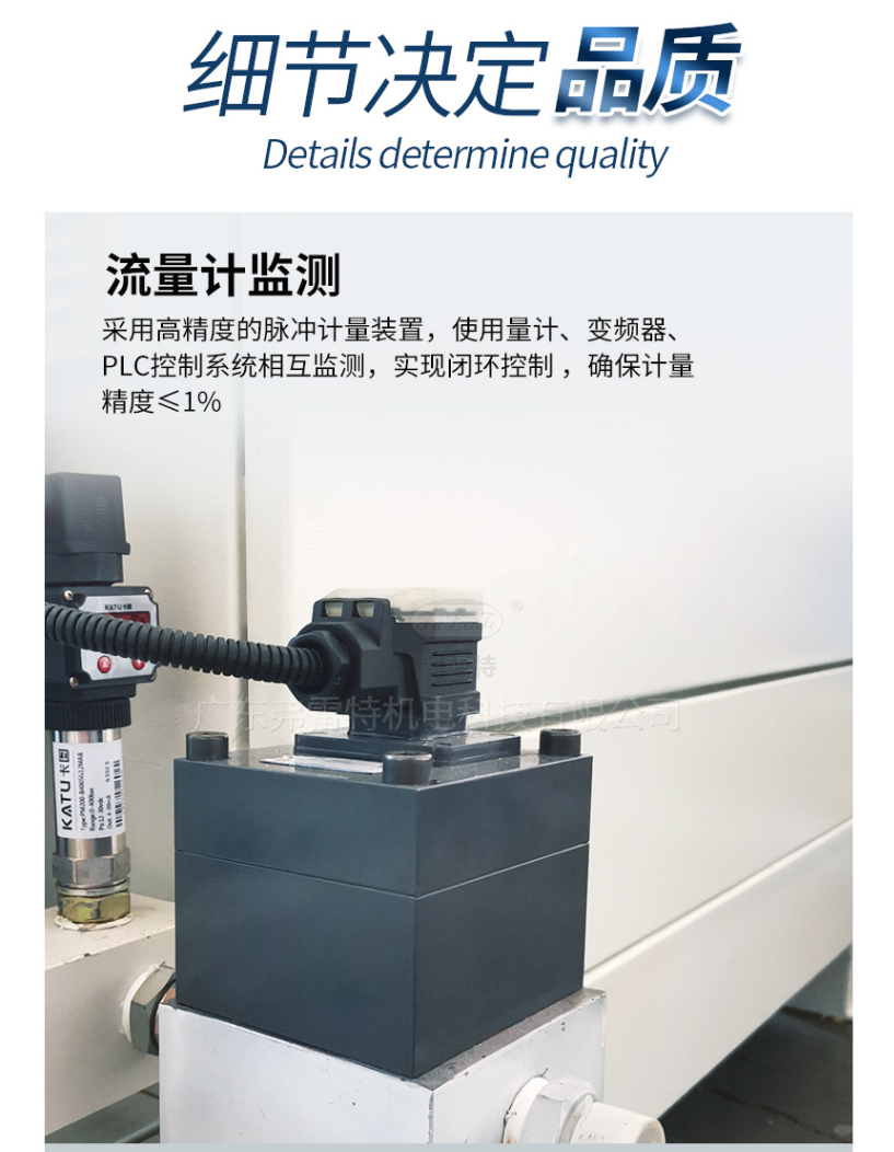 流量計監測:采用高精度的脈沖計量裝置,使流量計、變頻器、PLC控制系統相互監測,實現閉環控制,確保計量精度≤1%。