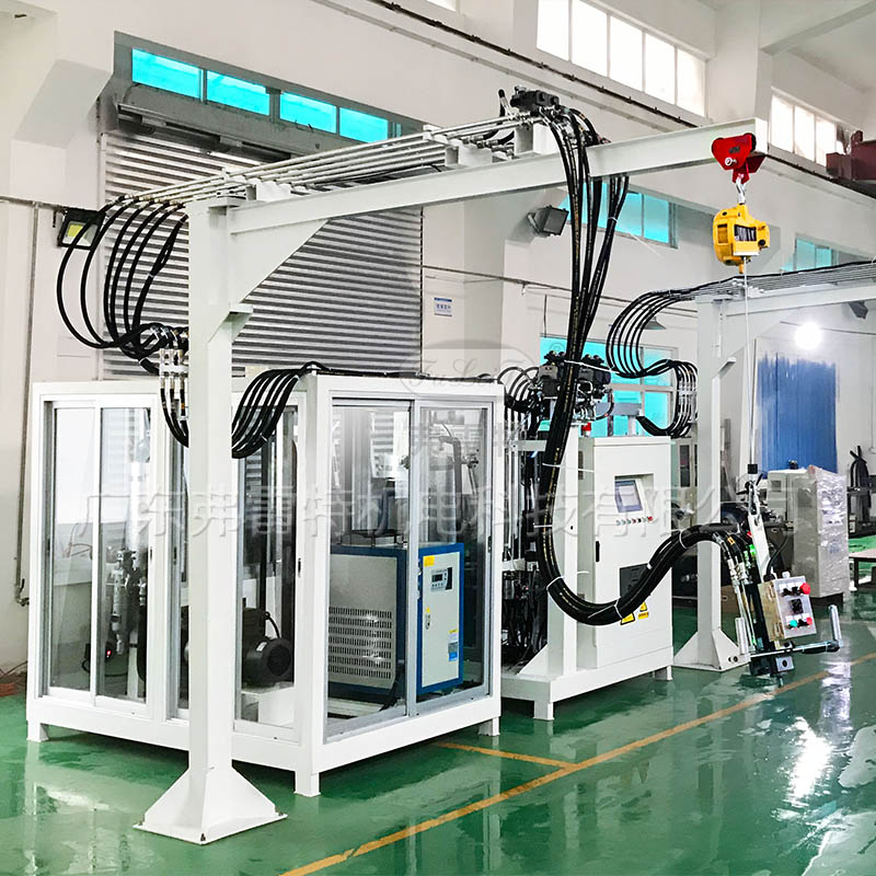 2、雙恒溫控制:采用雙冷熱一體機(jī),配合冷熱交換器,確保原料溫度恒定,誤差<±2℃ ,提高制品發(fā)泡質(zhì)量。