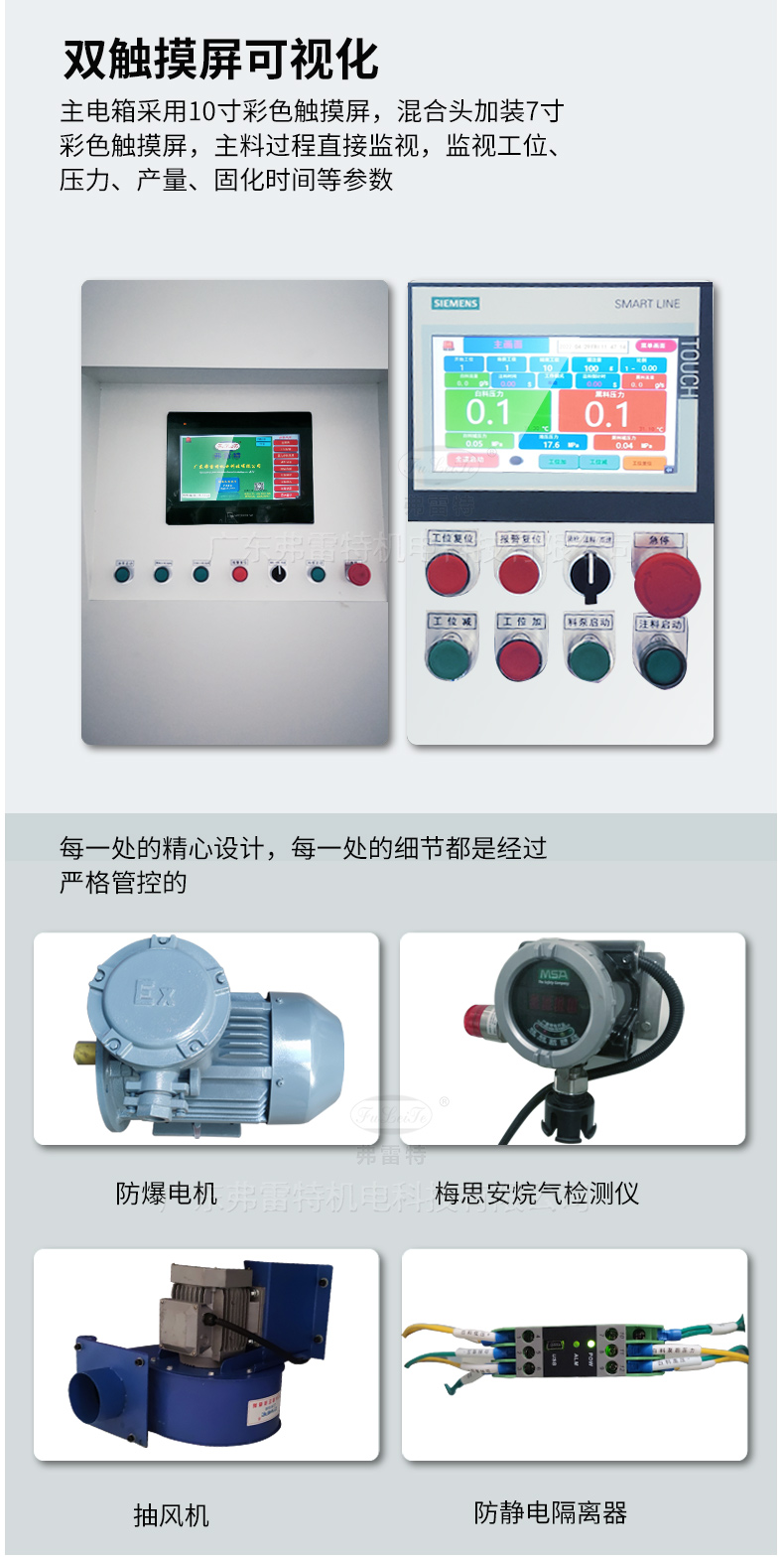 具有西門子PLC+雙變頻多功能安全裝置,38個智能自檢保護點,獨立防靜電房,烷氣濃度等級自動識別系統(tǒng),自動2-3級抽風(fēng)系統(tǒng),西門子防爆電機,獨立導(dǎo)地裝置,槍頭引線靜電導(dǎo)出裝置等。