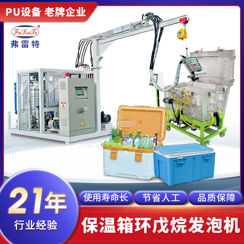 保溫箱環戊烷發泡機設備 在保溫箱箱體內部澆注聚氨酯發泡原料,一臺保溫聚氨酯高壓發泡機,支持批量澆注生產不同規格不同尺寸的保溫箱,用弗雷特高壓發泡技術,生產出來的保溫箱牢牢鎖住熱量,保溫效果非常好! 弗雷特環戊烷發泡機具有西門子PLC+雙變頻多功能安全裝置,38個智能自檢保護點,獨立防靜電房,烷氣濃度等級自動識別系統,自動2-3級抽風系統,西門子防爆電機,獨立導地裝置,槍頭引線靜電導出裝置等。