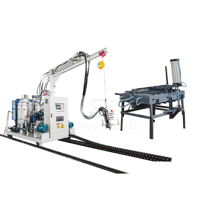 在發泡范圍較大的生產車間使用帶軌道可移動發泡機設備,根據發泡工位放置的需求,發泡機可在軌道上前后走動,到合適的位置上進行澆注工作。避免了頻繁搬運工件,提高了生產效率。可以在軌道兩旁放置多個發泡模具,空間利用率高,使整個生產流程銜接得更加緊密、順暢。