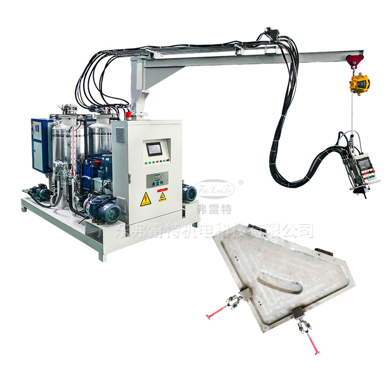 將兩組份原料,分別儲存在兩個儲料罐中,通過兩臺高精度柱塞計量泵,輸送至混合槍頭,通過高壓對射讓物料充分混合,高壓碰撞,泡孔細膩,大大提高產品質量。