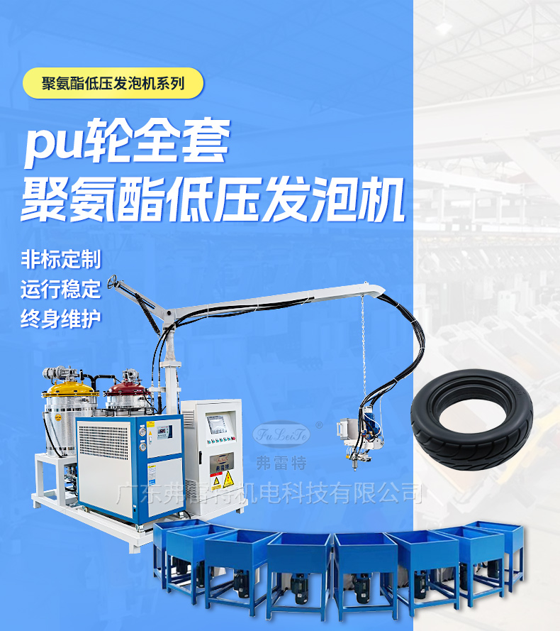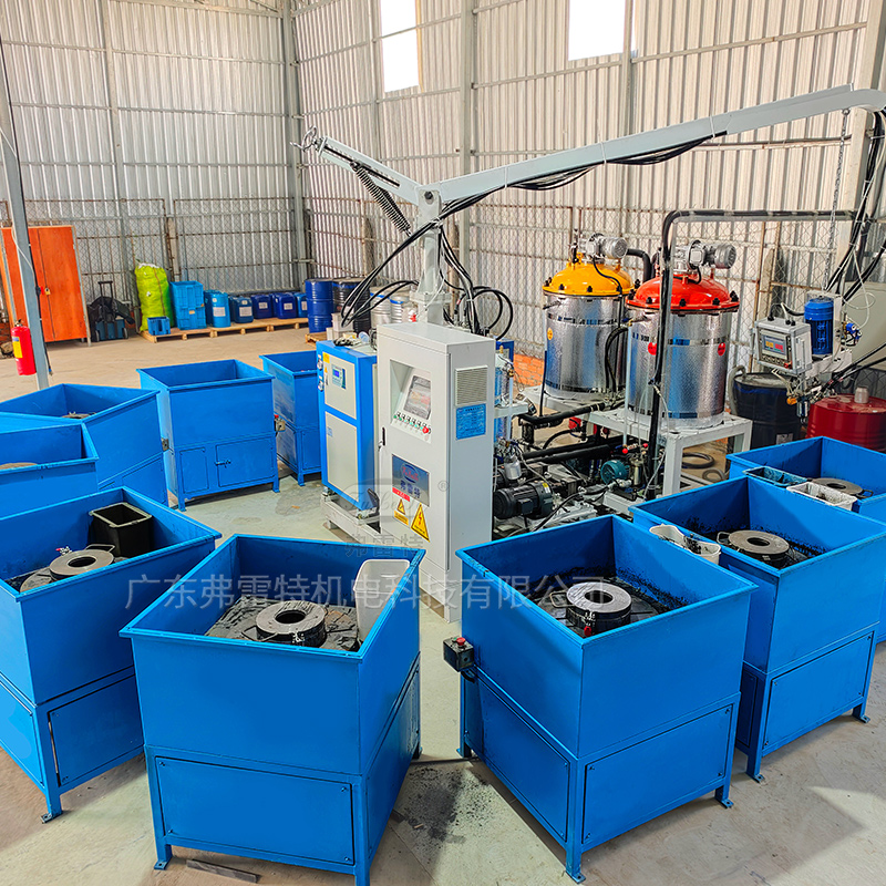 弗雷特PU輪全套聚氨酯低壓發泡生產線設備出口柬埔寨,全套發泡生產線設備已經送到客戶工廠并安裝調試完成。整條生產線由10套離心機和1臺弗雷特低壓發泡機組成,澆注后使用離心機可以使原料分布均勻,發泡成型效果更好,整個操作步驟非常簡單。弗雷特的發泡機設備已出口到全球100多個國家,業務遍及歐洲、南美洲、東南亞、中東和非洲等地區。聚氨酯低壓發泡機參數:
