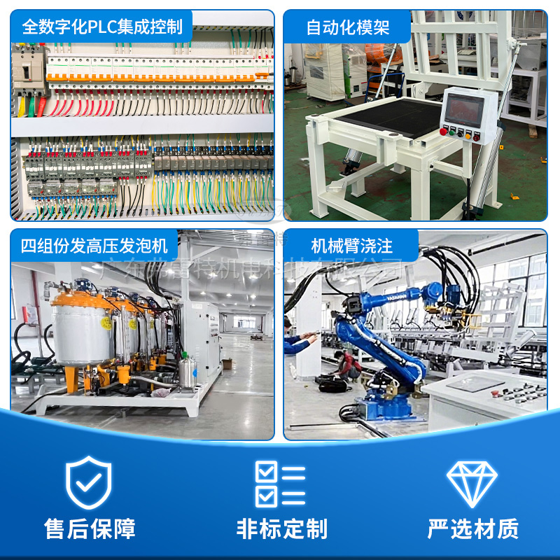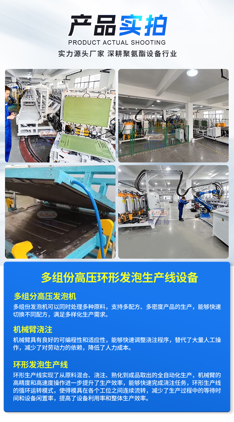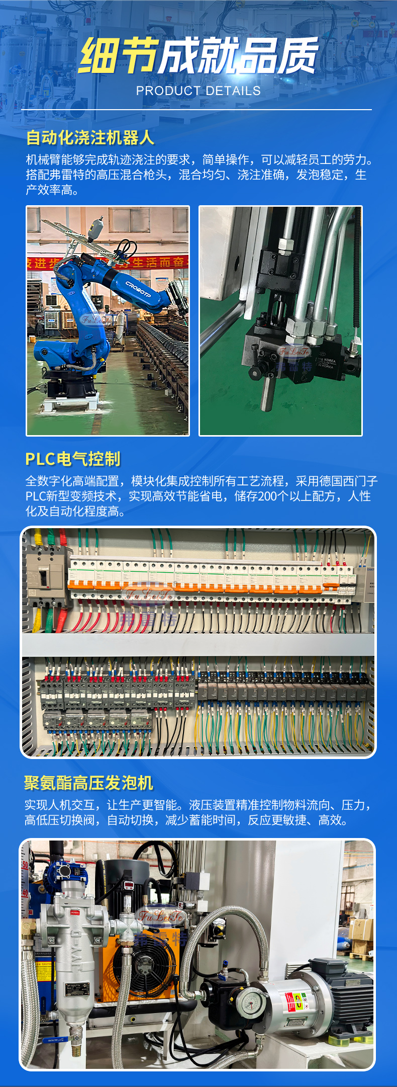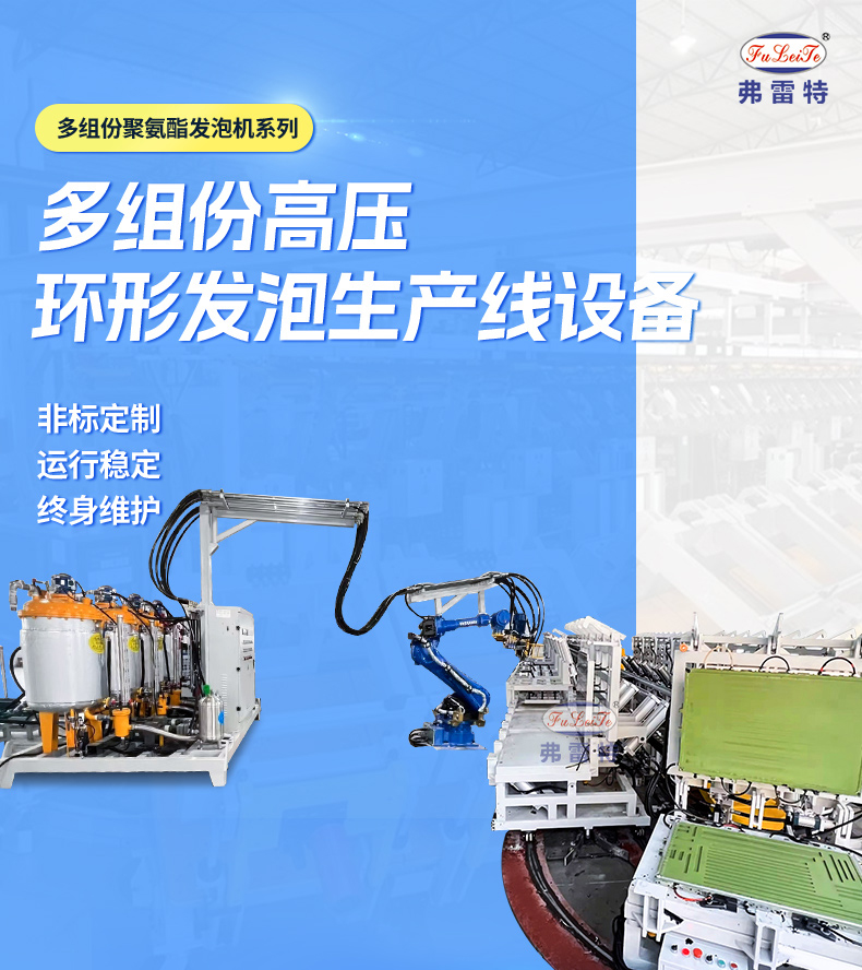 這套設備采用弗雷特研發(fā)的機械臂自動化澆注,操作更為簡單,性價比高;自動機械臂搭配弗雷特聚氨酯高壓發(fā)泡機,高壓槍頭自動澆注,氣動模架自動開合,節(jié)省人力,操作更為方便。整套發(fā)泡生產(chǎn)線由弗雷特制造,我們致力于為客戶提供完整的聚氨酯設備配套方案。多組份聚氨酯高壓發(fā)泡機參數(shù)