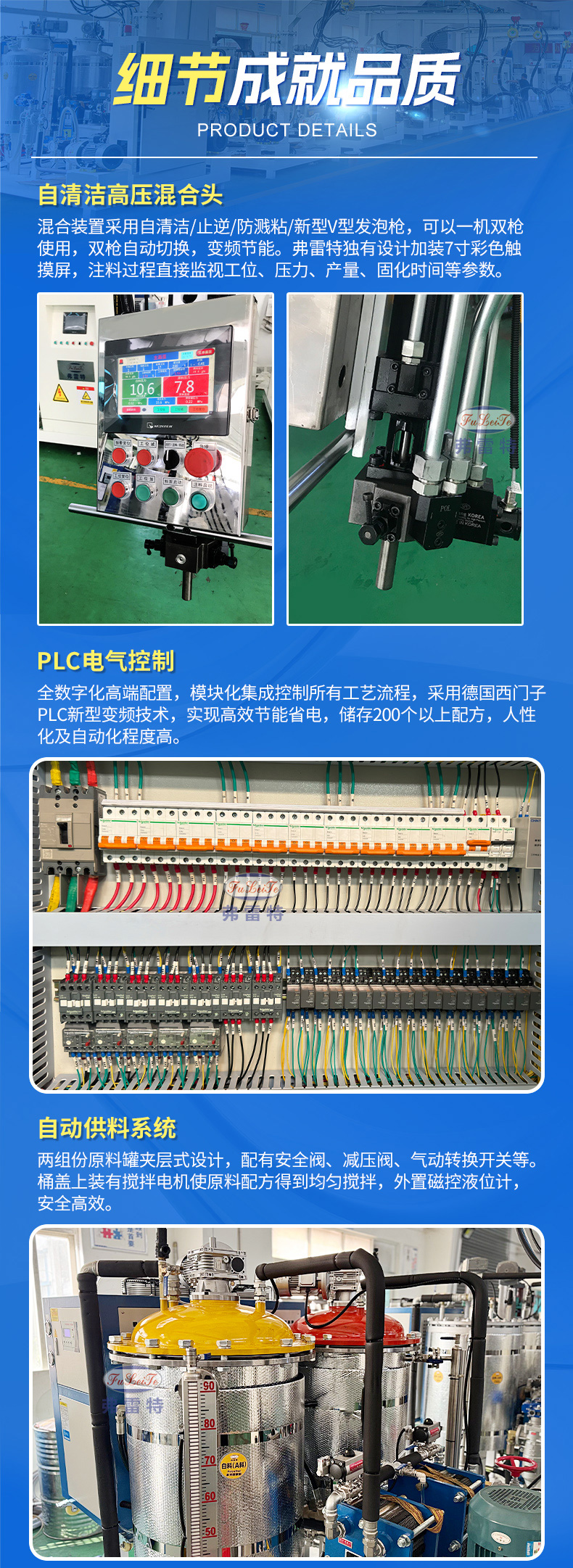 我們這個三組份的設計,多出來的是我們設計的一個色漿罐,在作料的同時,我們可以加色漿進去,那就方便添加色料進去,比如說黑色的,在原材料不夠黑的情況下,我們可以加一些輔助色漿進去,來滿足顏色的要求。或者是可以添加其他顏色,這樣方便來做多種顏色的產品。這就是我們三組份一個很大的優點!