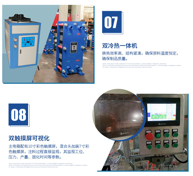 雙恒溫控制:采用雙冷熱一體機(jī),配合冷熱交換器,互動循環(huán),確保原料溫度恒定,誤差<±2℃。