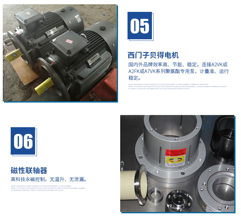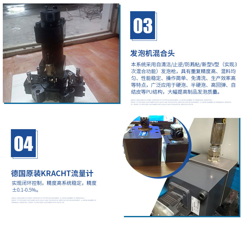 混合裝置:本系統(tǒng)采用自清潔/止逆/防濺粘/新型V型(實(shí)現(xiàn)3次混合功能)發(fā)泡槍,結(jié)構(gòu)美觀、操作方便。配合西門子聚氨酯專用泵,注射準(zhǔn),混合效果很好。