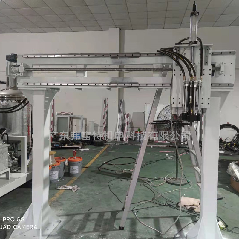 在操作中,將PU液體通過特定的機器灌注到所需要加工的產品模具內。 采用三軸聯動系統,能夠實現完全自動化的操作。 采用PLC電腦編程控制,按照編程控制的路徑進行灌注,根據不同需求對功能進行定制化。 灌注的速度和時間可以自行設定,具有方便靈活效率高等特點。 連續工作時的總流量可隨時調整,或隨流水線車速聯動。 活動機構全程數字化,優化吐料分配,減少機械磨損。 定量傳輸系統高兼容性,適應不同廠家配比的原材料。