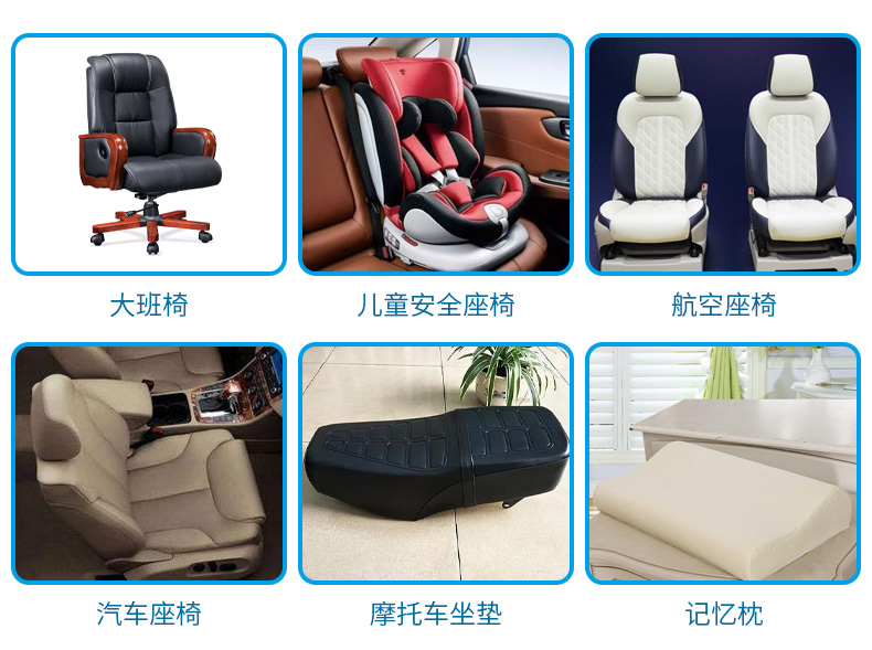 用于汽車坐墊、記憶頭枕、摩托車座墊、自行車鞍座、辦公座椅、汽車扶手、兒童安全座椅等領(lǐng)域。